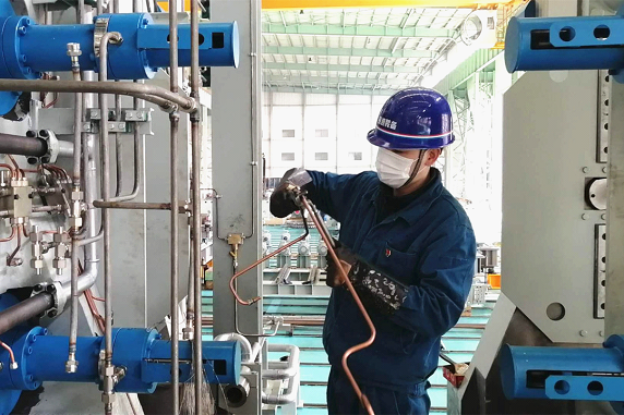 復工初期,既要保生產,又要做防控。工期緊張,突擊隊就白晝連班作業,吃飯在車間,午休在車間,常常連續工作10小時以上,沒有一人有過怨言。萬能軋機由于機上液壓缸、水管繁多,機體管路復雜,在配管人員人力不足的情況下,黨員劉成另挺身而出,根據裝配需求隨叫隨到,每天更是主動延長加班時間2小時以上,配合鉗工穿插作業,為項目推進爭取時間。