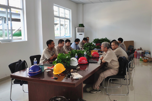 項目現場工作往往比在公司車間辛苦得多,不確定的因素、不規則的作息、復雜的環境都加大了工作難度。但這些并沒有難倒鉗工團隊,在項目進度進入最后調試沖刺階段時,傅茂元、李強、羅鍵三位師傅挺身而出支援現場,在克服現場時間緊、任務重的條件下,一個月時間里幾乎每天晚上都連班到12點,有時甚至通宵達旦。正是因為有他們顧全大局,不怕困難,不撂挑子的付出,安裝調試工作才得以高質量完成。