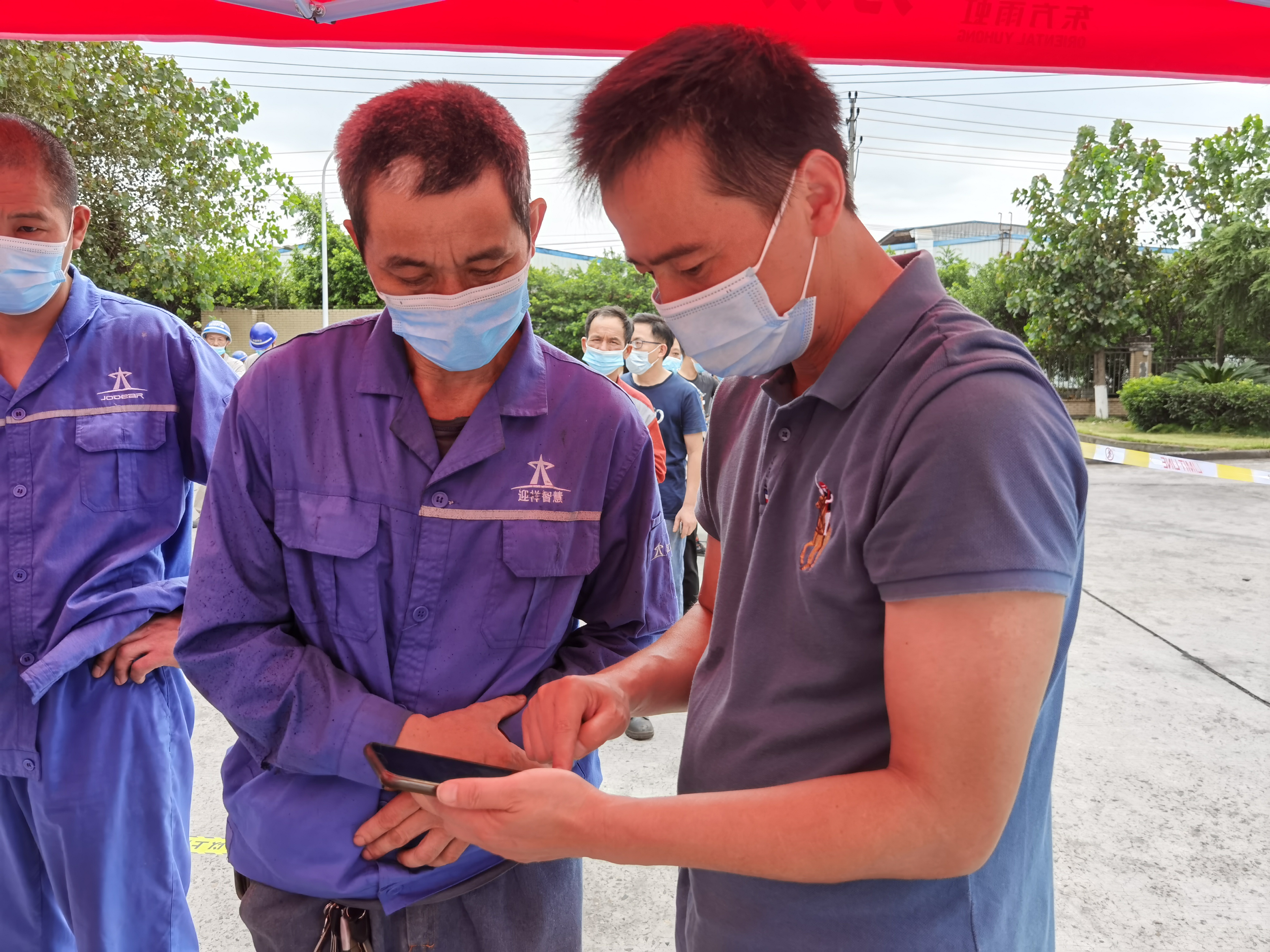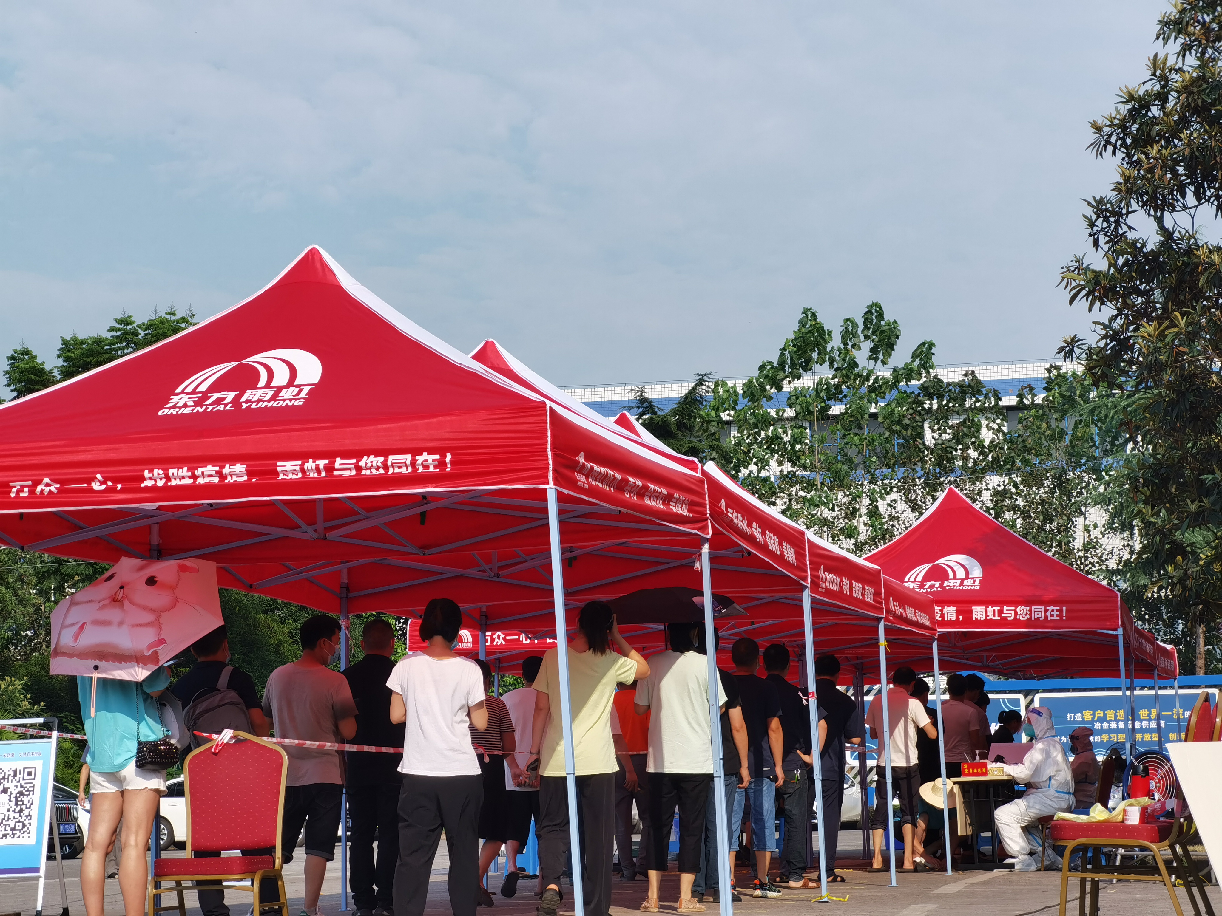 22日,距離中冶賽迪裝備約2公里的區(qū)域也出現(xiàn)了確診病例。為積極配合江津區(qū)政府疫情防控工作安排,當(dāng)日上午約9時(shí)許,公司作為園區(qū)的五個(gè)核酸采樣點(diǎn)之一,立即協(xié)助園區(qū)開展公司江津辦公區(qū)全體員工及周邊企業(yè)人員核酸檢測工作。公司工會、團(tuán)委及新冠疫情防控工作領(lǐng)導(dǎo)小組辦公室動員了多名員工組成志愿者隊(duì)伍,迅速開始布置場地。搬桌子、接插座、搭遮陽棚、貼間隔線、擺指示牌……各項(xiàng)工作僅半個(gè)小時(shí)即完成。10點(diǎn)核算樣本采集工作準(zhǔn)時(shí)開始,維持秩序、檢測體溫、指導(dǎo)采樣步驟,采集工作有序開展,一直持續(xù)到下午8時(shí)。盡管當(dāng)天刮起六級大風(fēng),期間還出現(xiàn)降雨,但大家始終堅(jiān)持在現(xiàn)場做好服務(wù),未曾退縮。據(jù)統(tǒng)計(jì)當(dāng)日完成了公司全體員工及周邊泰宇機(jī)械、重齒機(jī)械等二十余家公司約4000名人員的采樣工作。