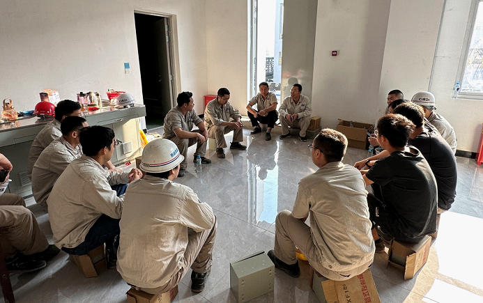 每日晨會在簡陋的辦公室定時(shí)召開。常務(wù)項(xiàng)目副經(jīng)理、黨員董立蘇逐個(gè)落實(shí)重點(diǎn)事項(xiàng),對每日繁雜的工作任務(wù)進(jìn)行簡單梳理,確保急難險(xiǎn)重問題能快速解決。