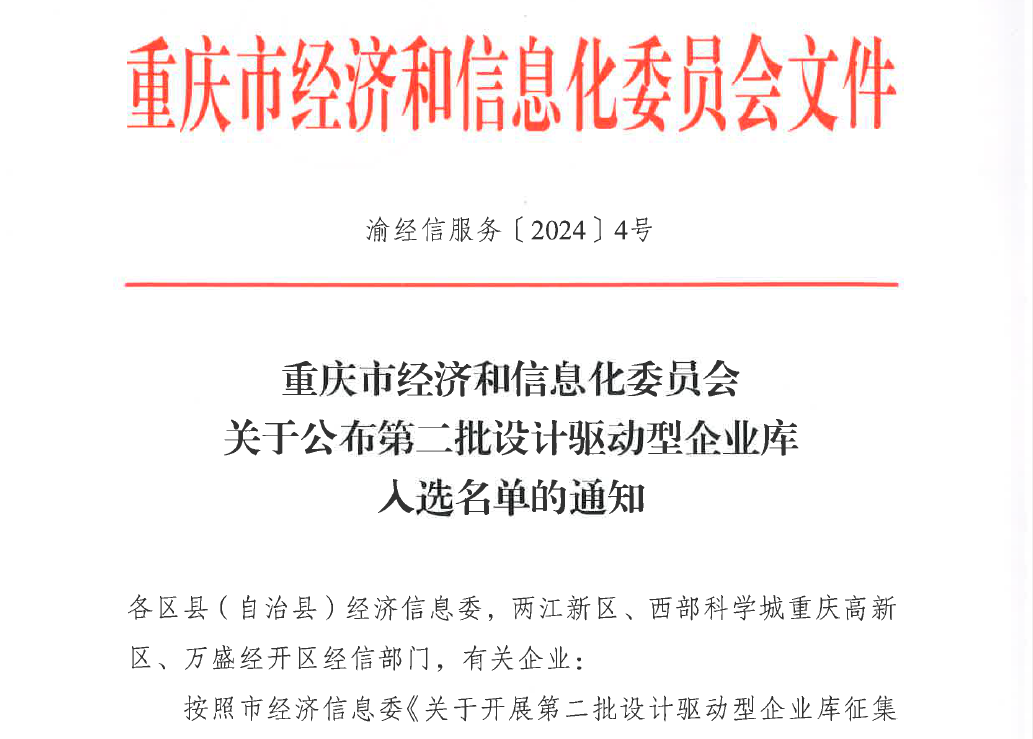 公司順利入選重慶市第二批設(shè)計(jì)驅(qū)動(dòng)型企業(yè)庫(kù)