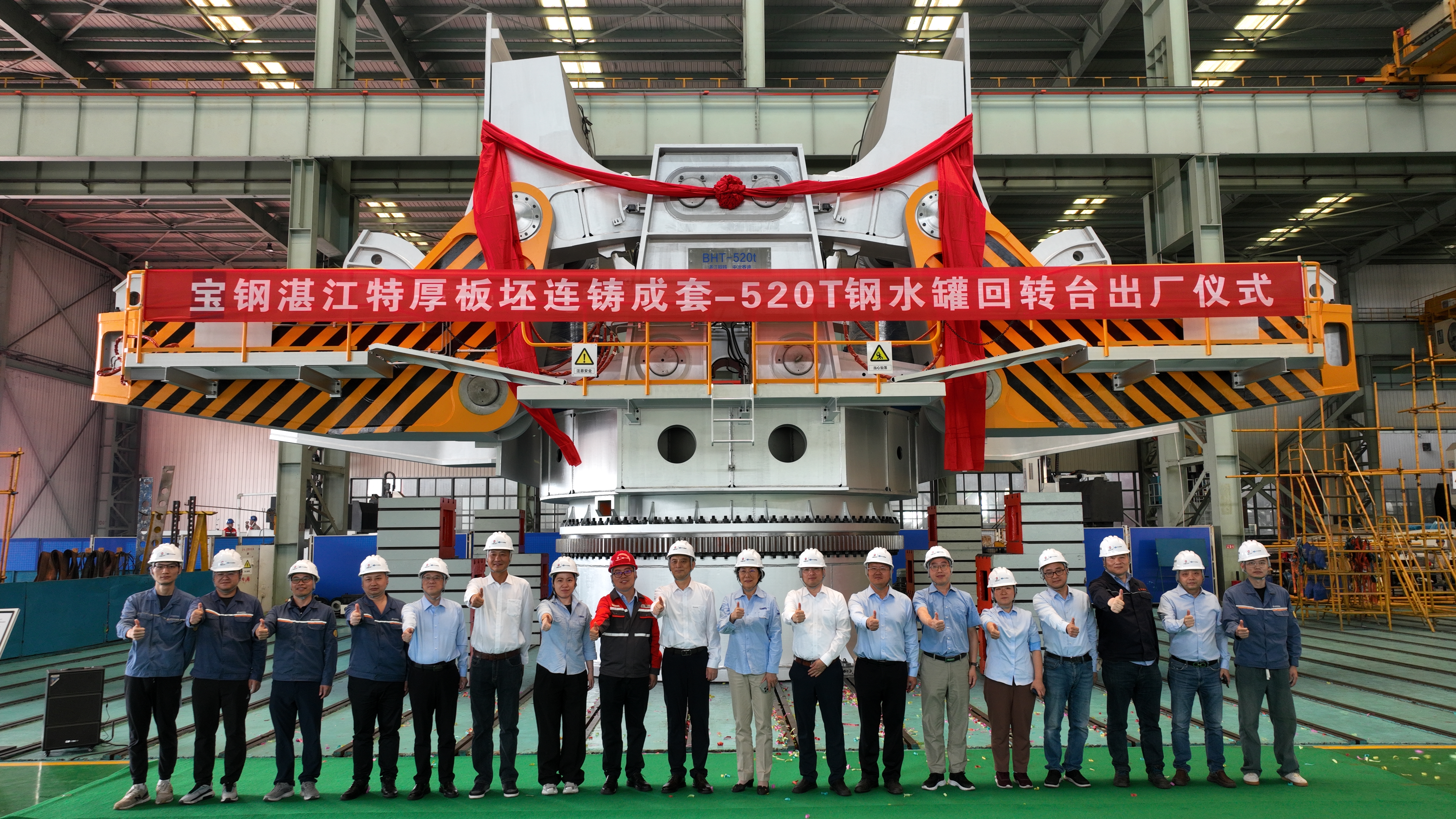 2025年5月14日,由中冶賽迪負(fù)責(zé)設(shè)計(jì)制造的寶鋼湛江鋼鐵新增5號(hào)特厚板坯連鑄成套項(xiàng)目鋼水罐回轉(zhuǎn)臺(tái)順利通過(guò)A檢驗(yàn)收,正式出廠。寶鋼湛江鋼鐵副總指揮王超及有關(guān)領(lǐng)導(dǎo)出席出廠儀式,中冶賽迪股份公司、中冶賽迪上海公司、中冶賽迪裝備公司有關(guān)負(fù)責(zé)人,參與本項(xiàng)目的技術(shù)、檢驗(yàn)、制造人員參加出廠儀式。